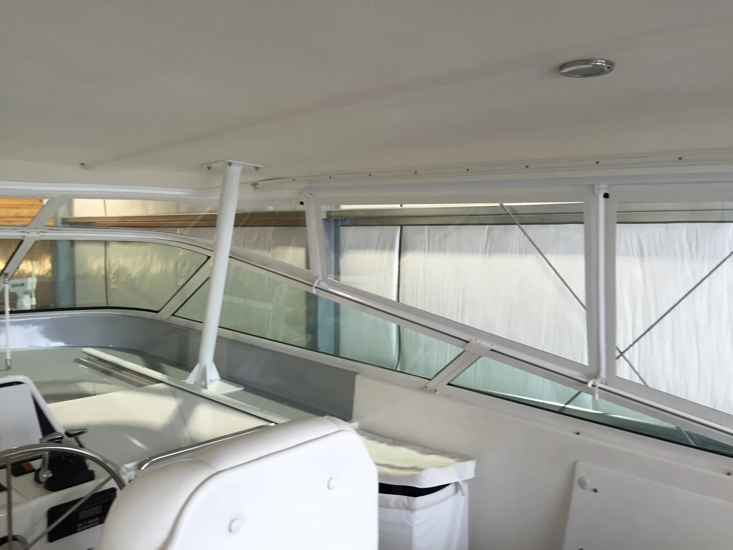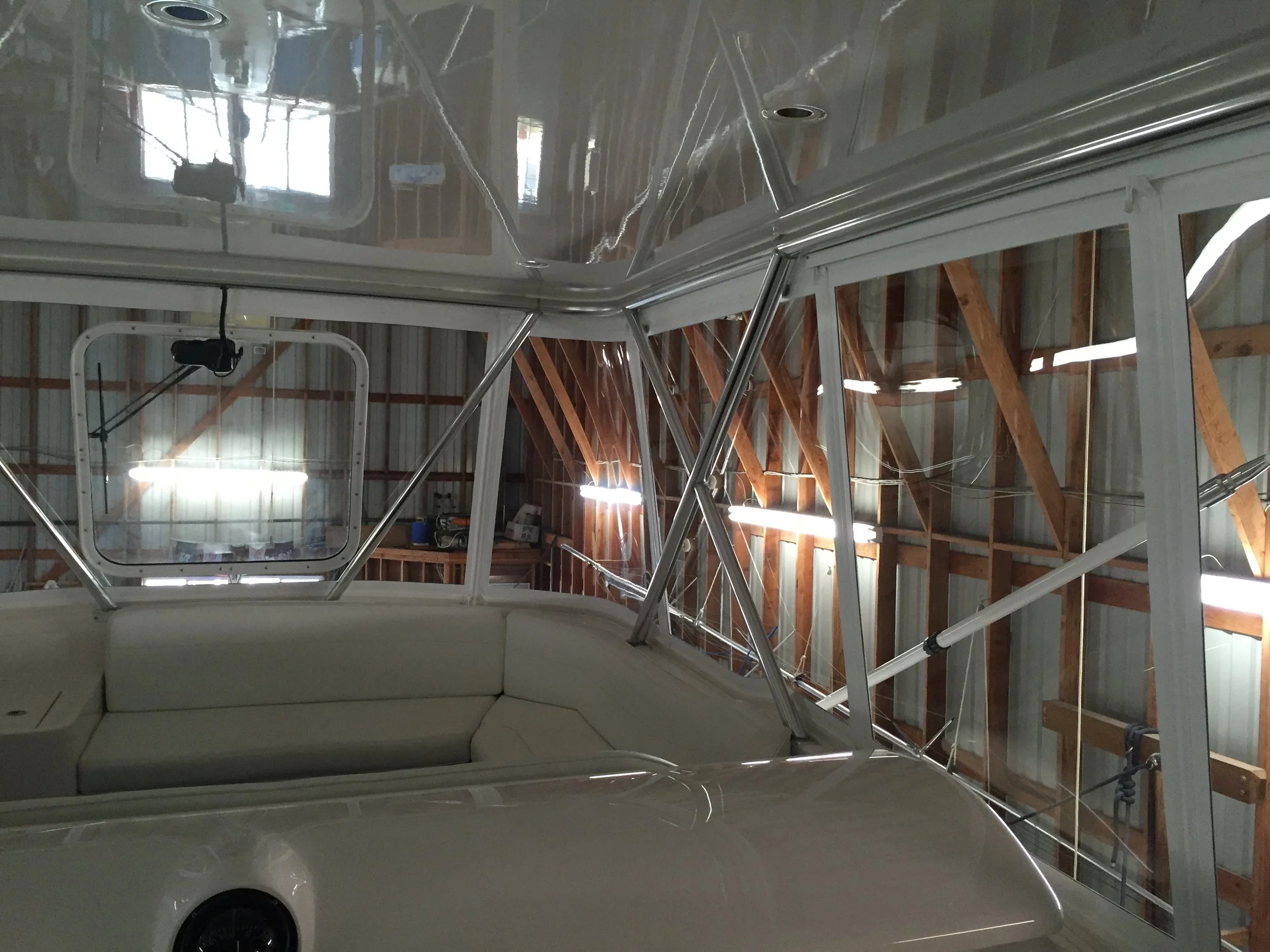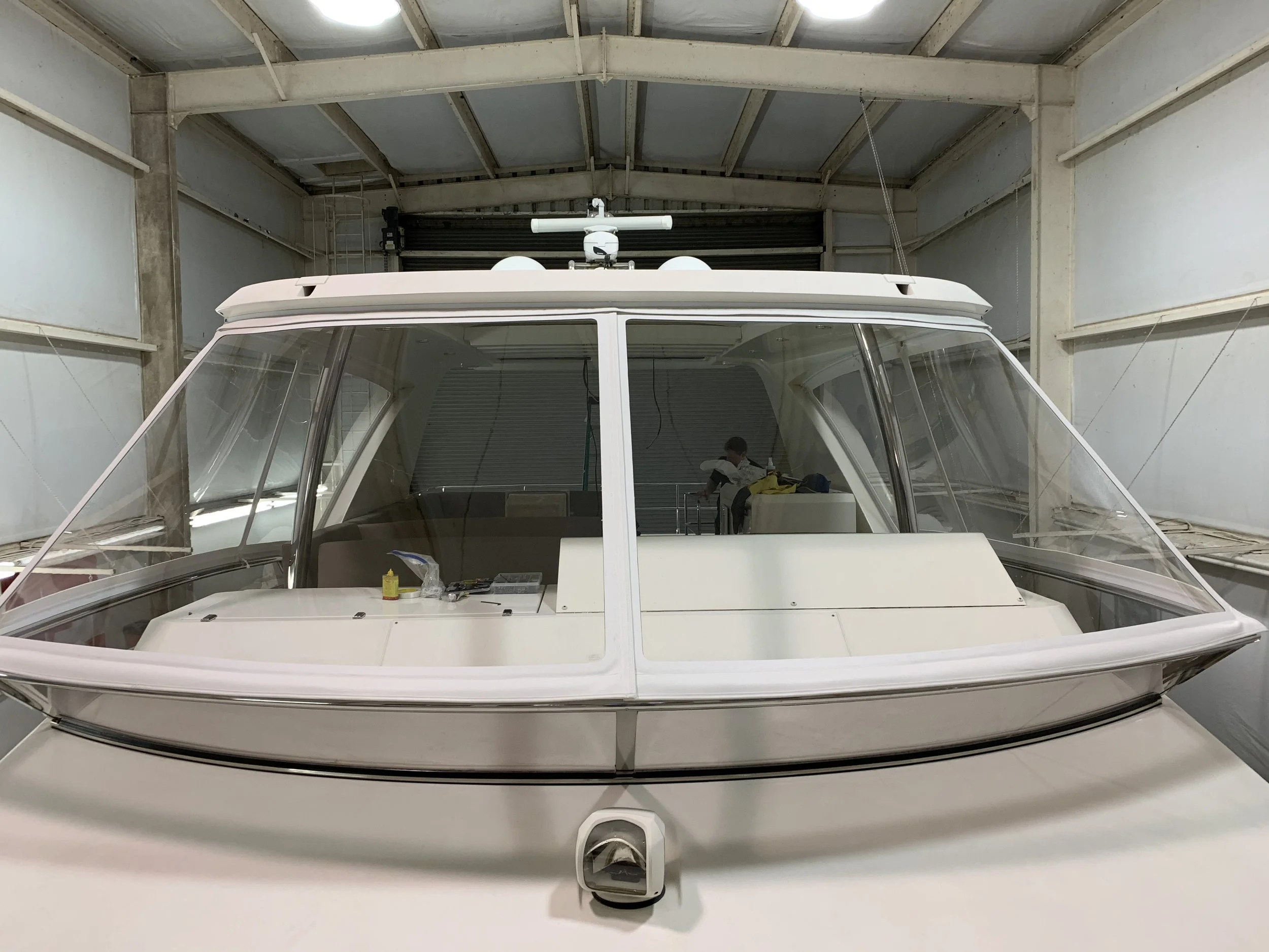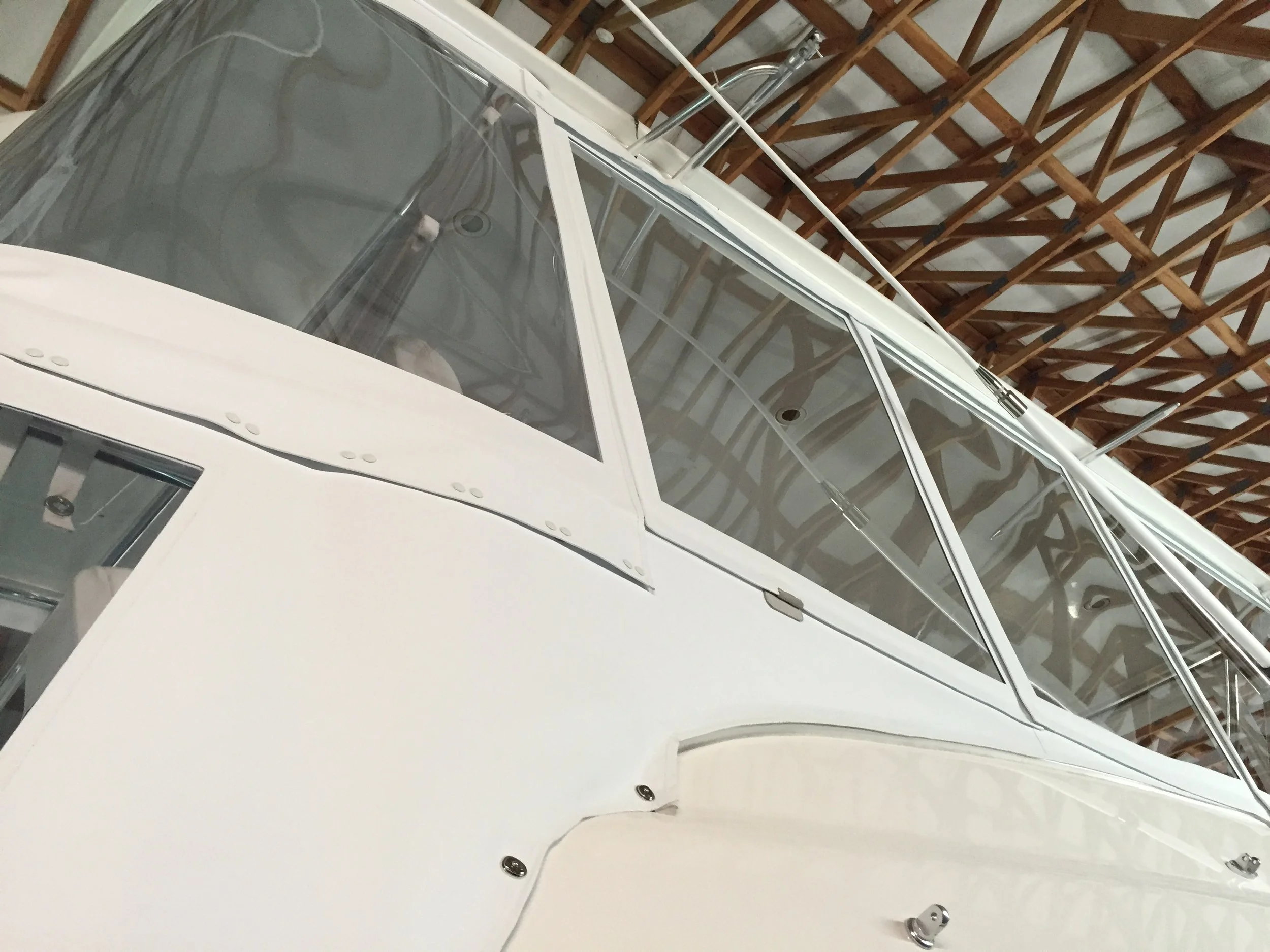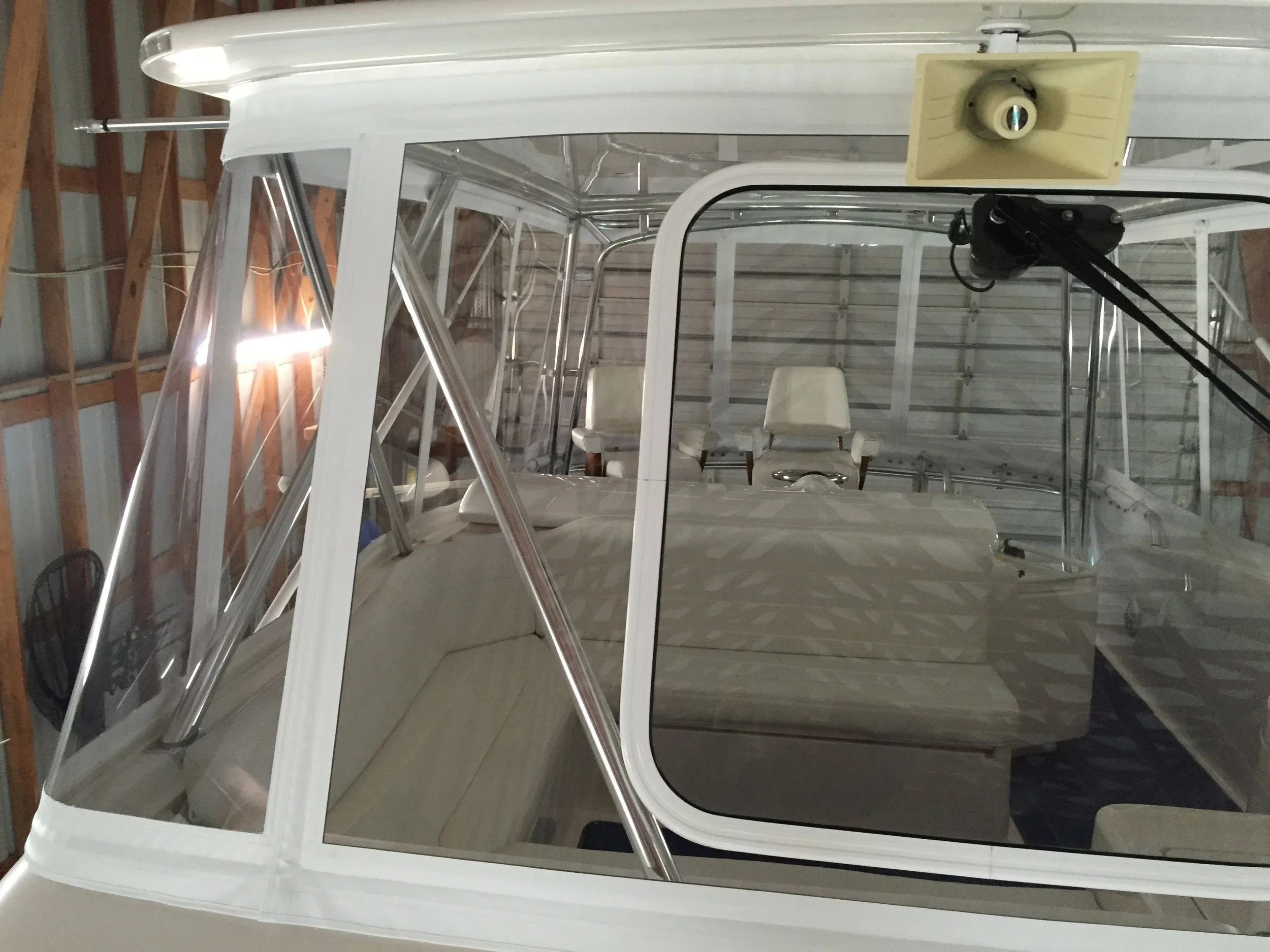 Our Semi-rigid windows start with 60 mil Tuffak Marine 5 polycarbonate. When combined with track to slide panels open, and tempered glass inserts with windshield wipers, these semi-rigid windows offer the best enclosure available for your boat.