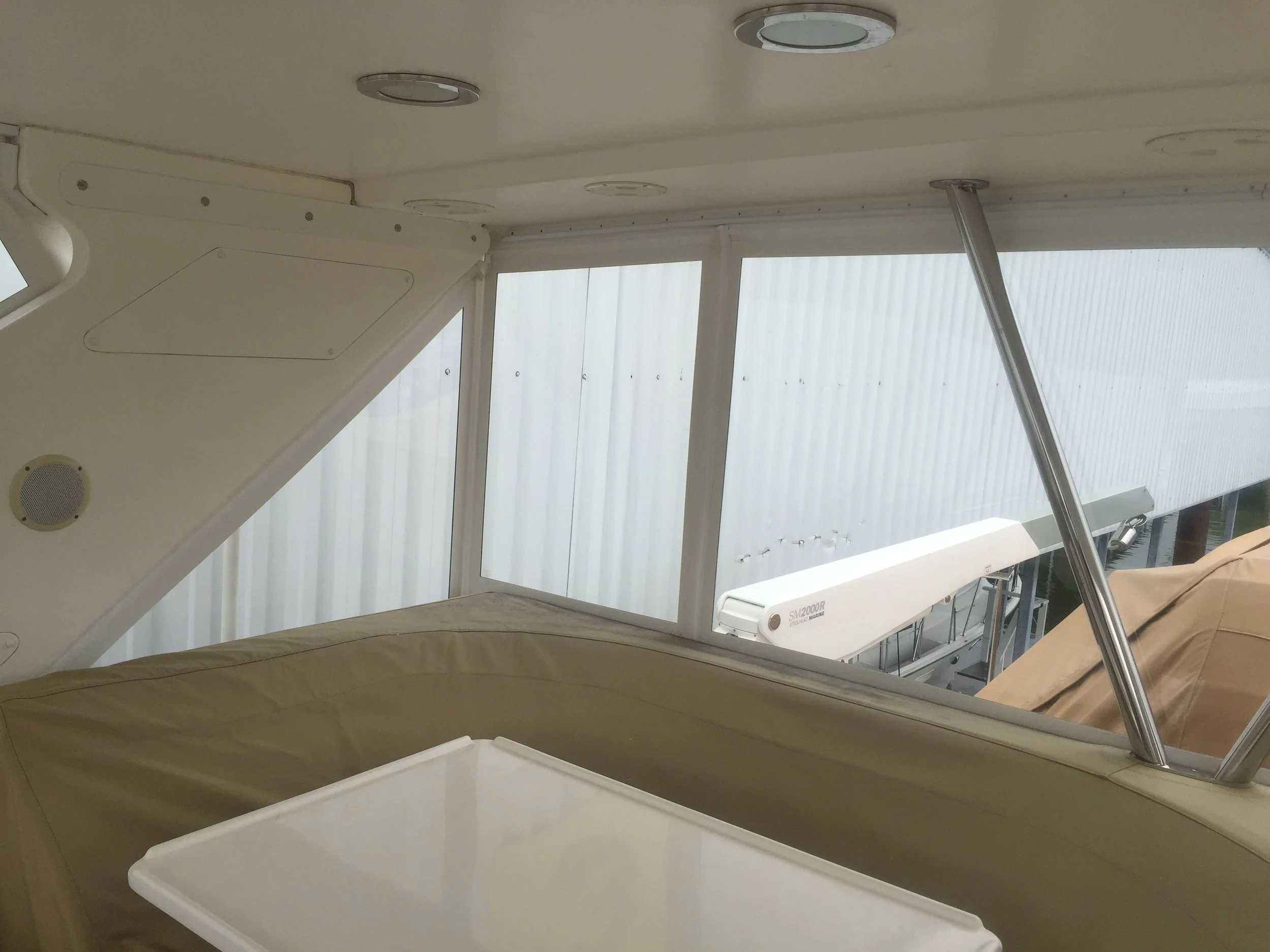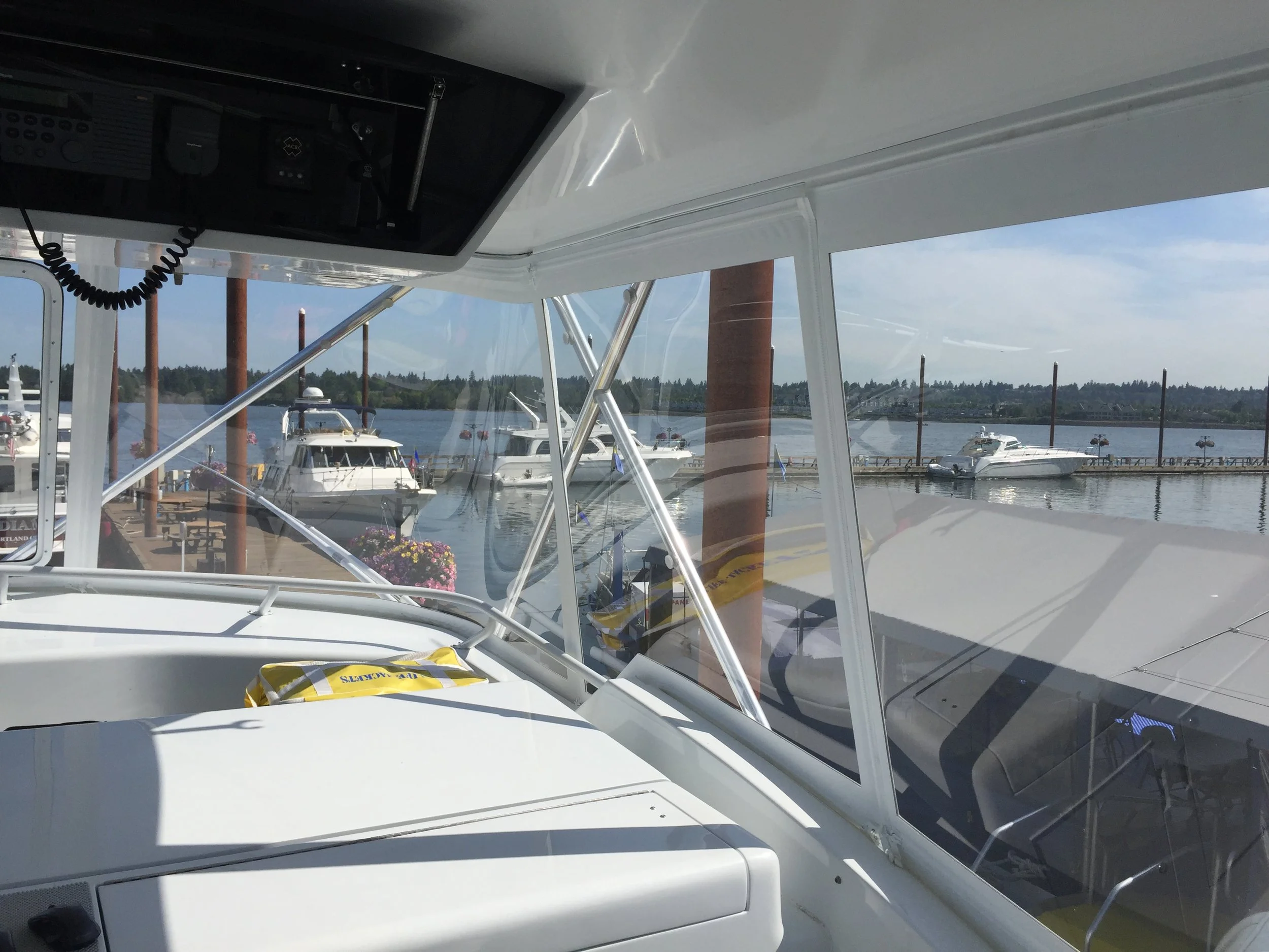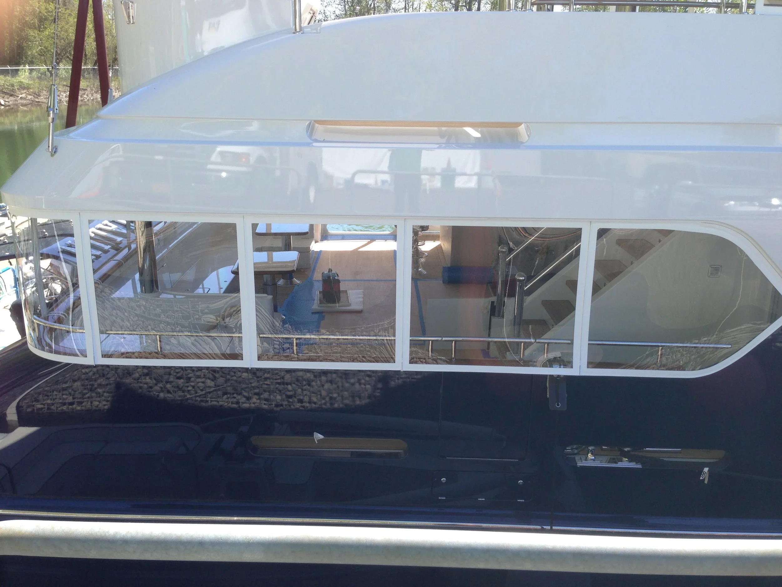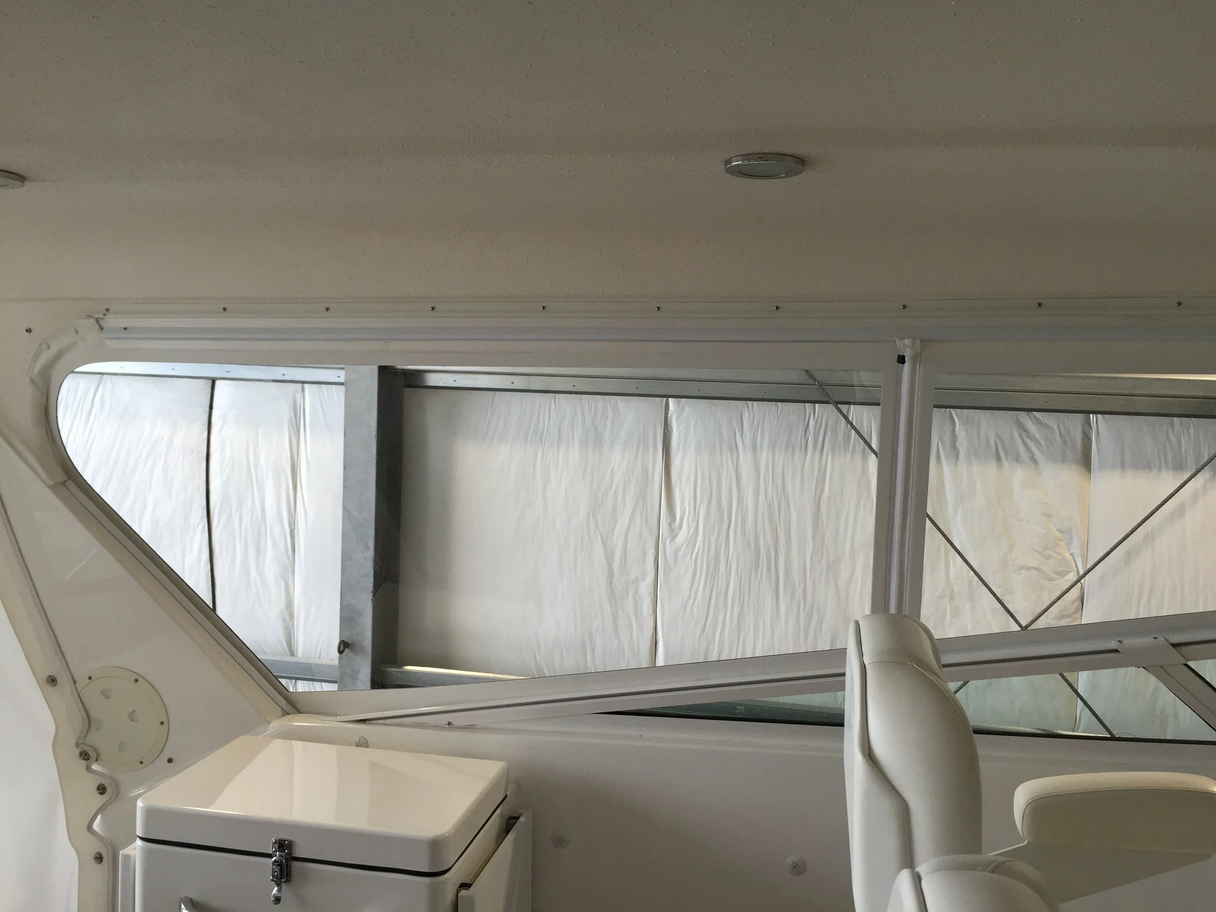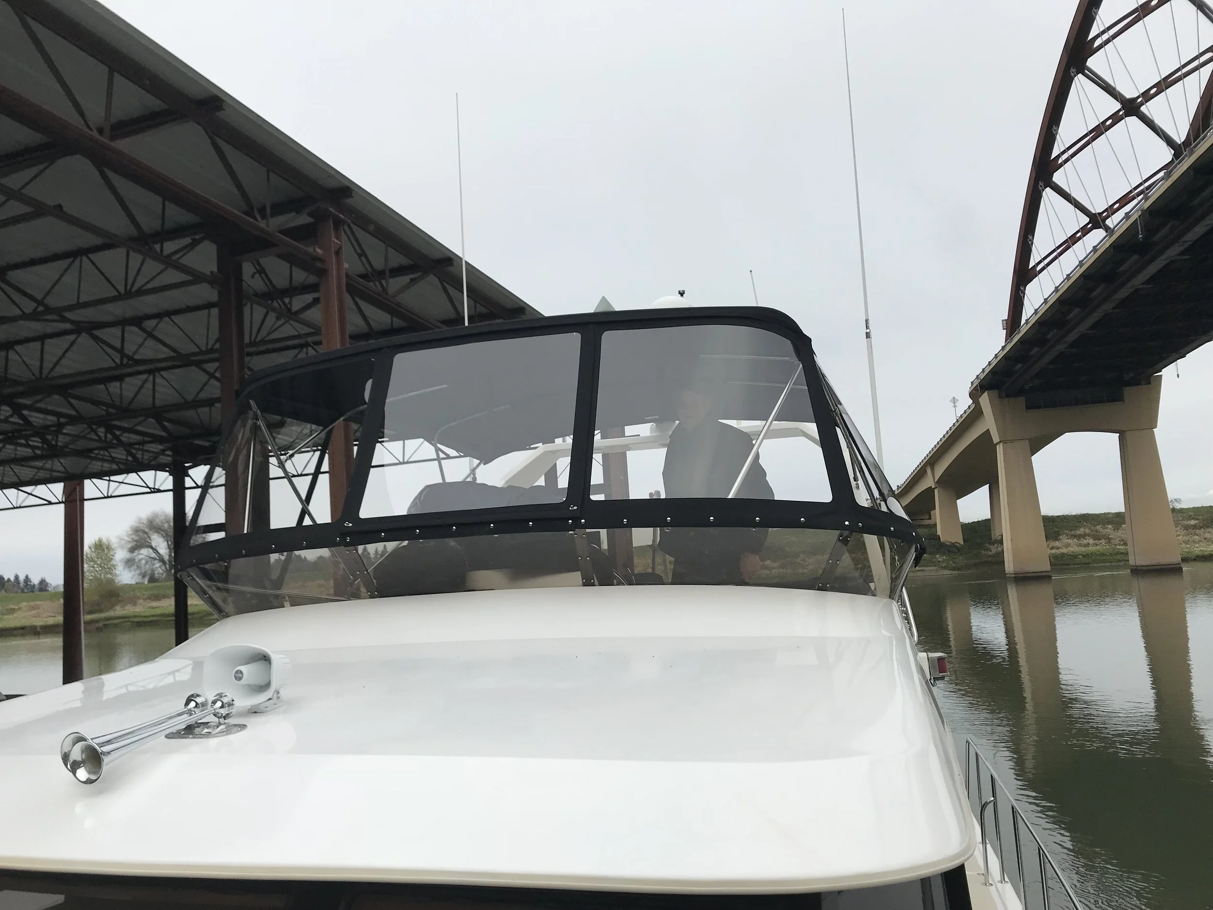 Our Semi-rigid windows start with 60 mil Tuffak Marine 5 polycarbonate. When combined with track to slide panels open, and tempered glass inserts with windshield wipers, these semi-rigid windows offer the best enclosure available for your boat.