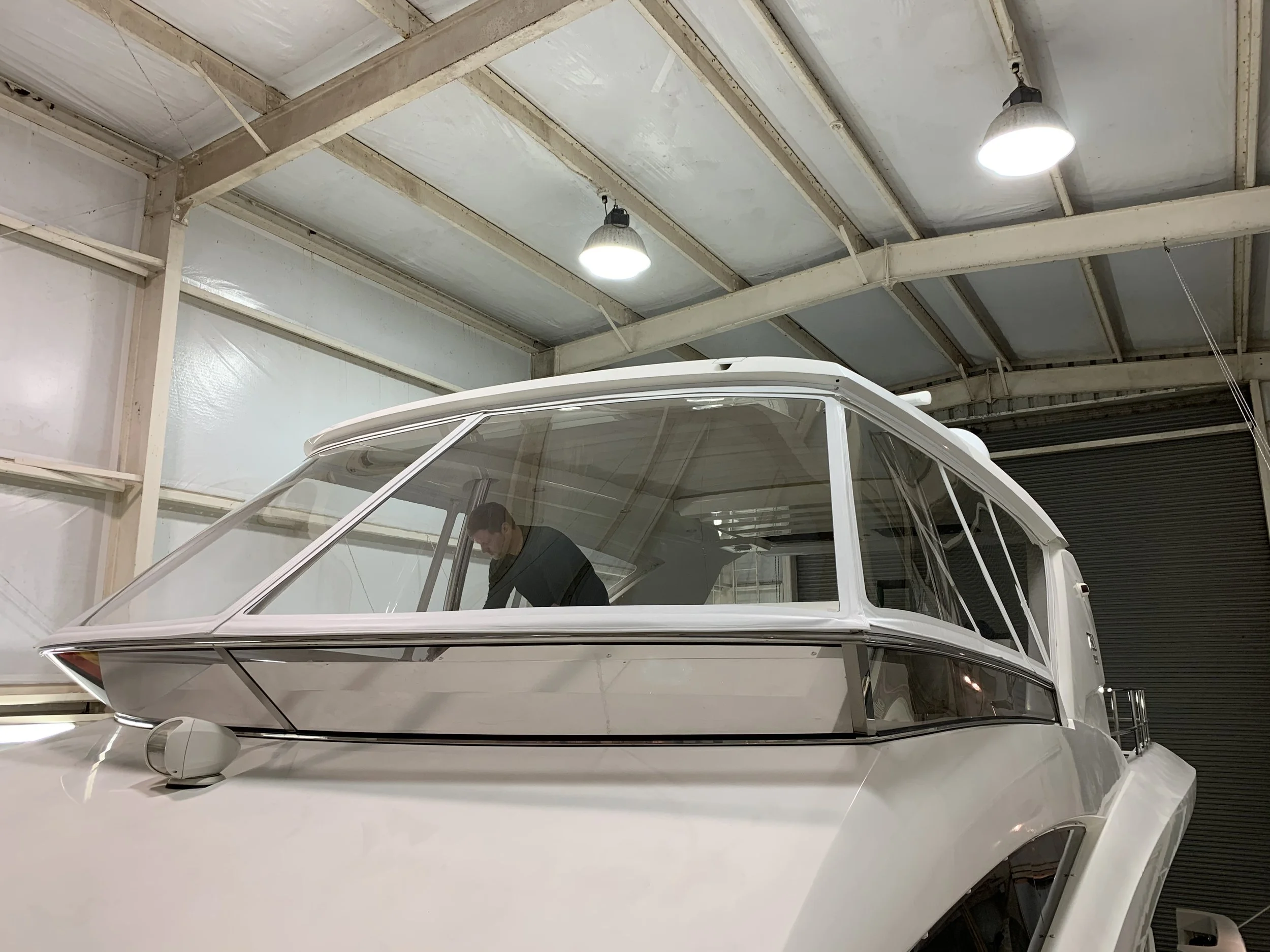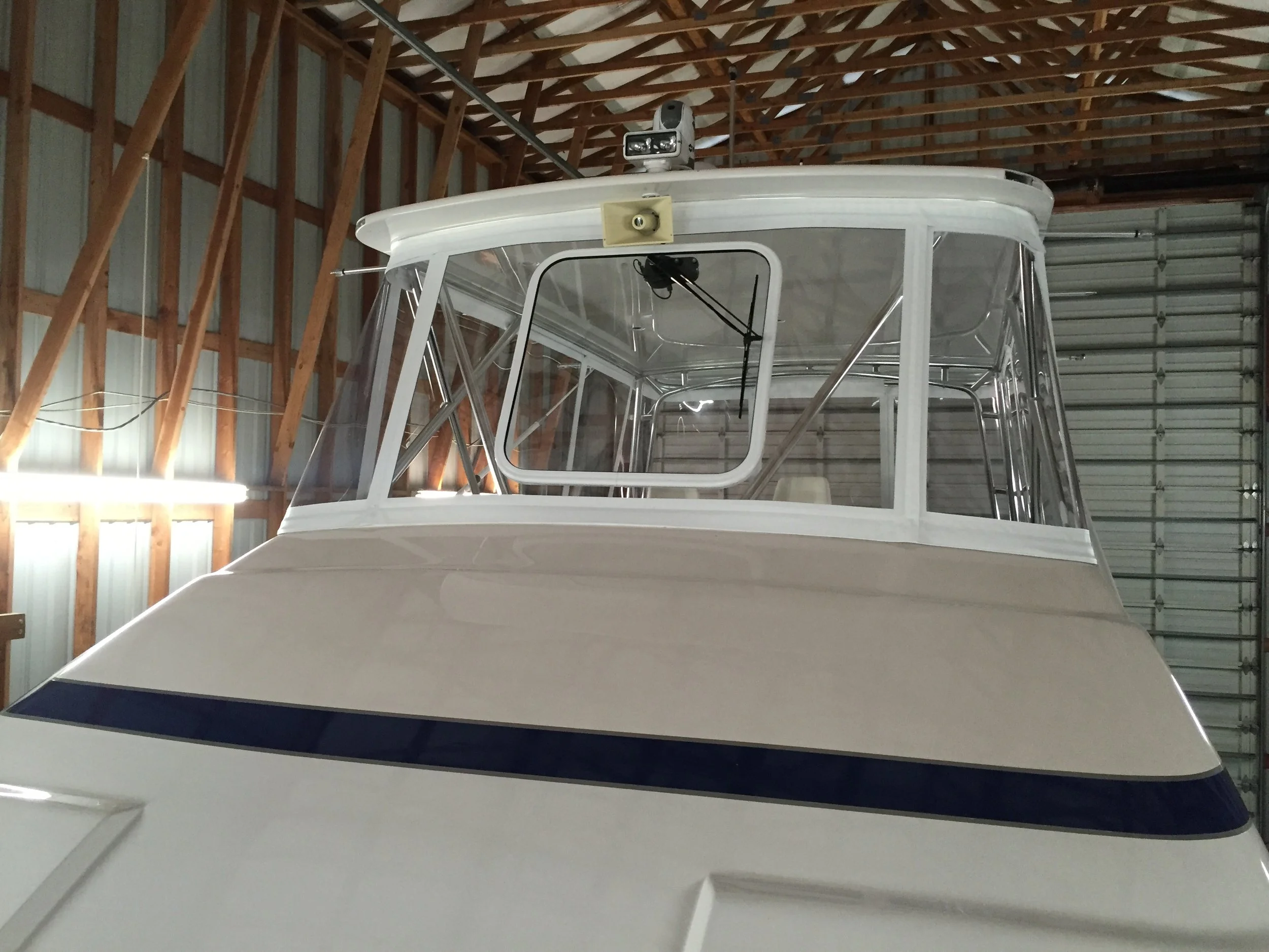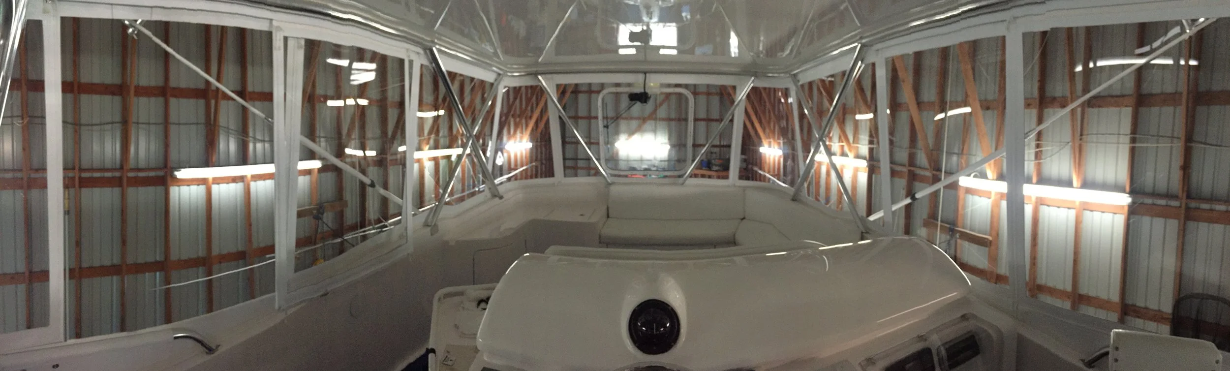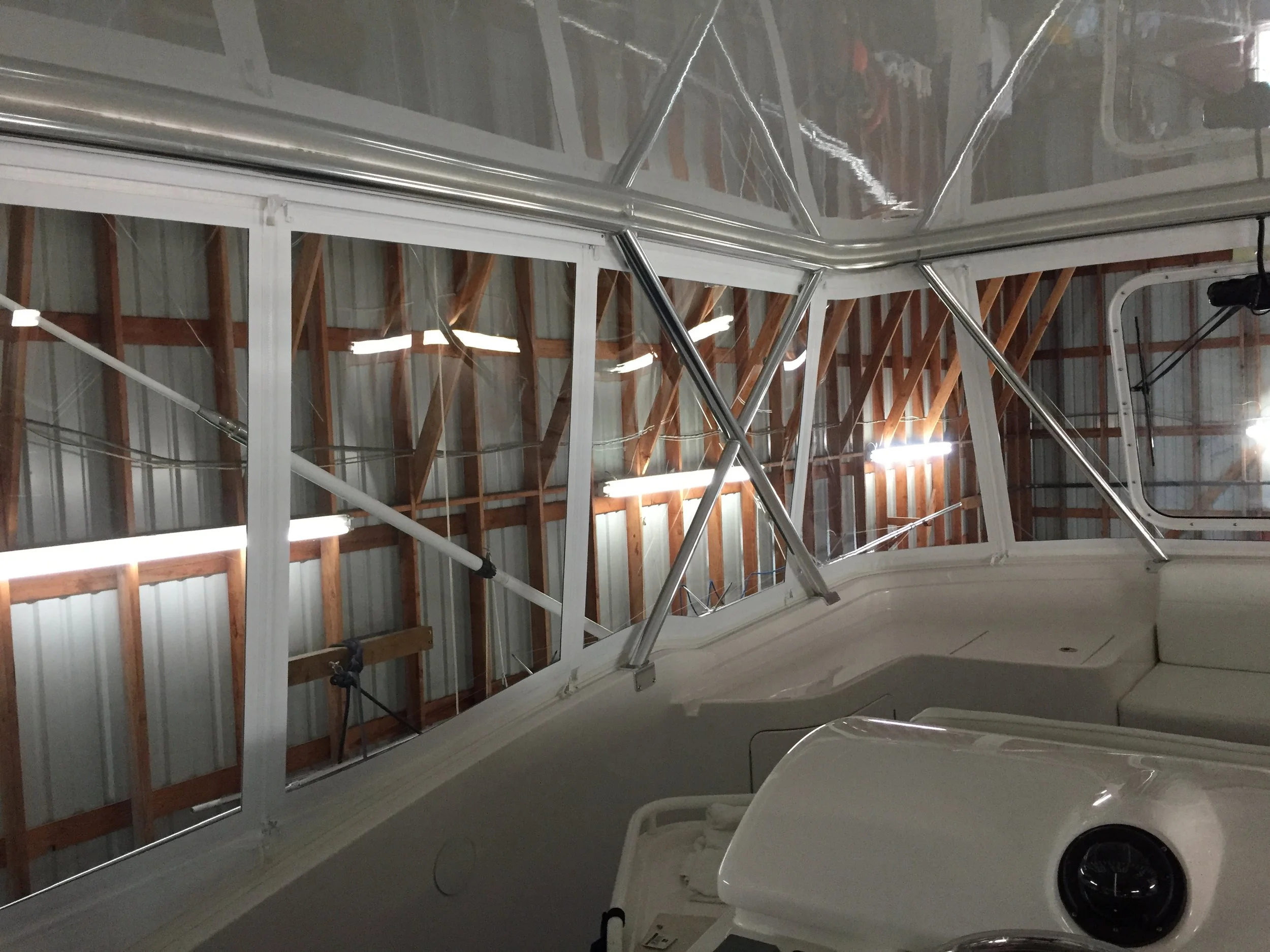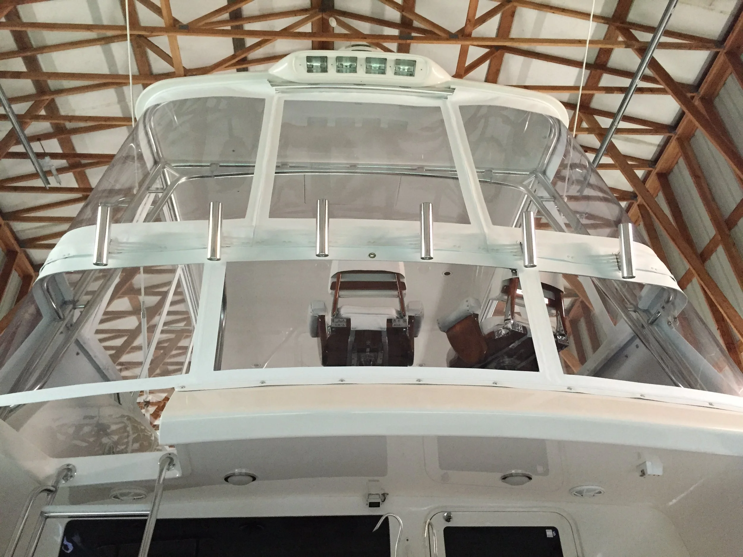 Our Semi-rigid windows start with 60 mil Tuffak Marine 5 polycarbonate. When combined with track to slide panels open, and tempered glass inserts with windshield wipers, these semi-rigid windows offer the best enclosure available for your boat.