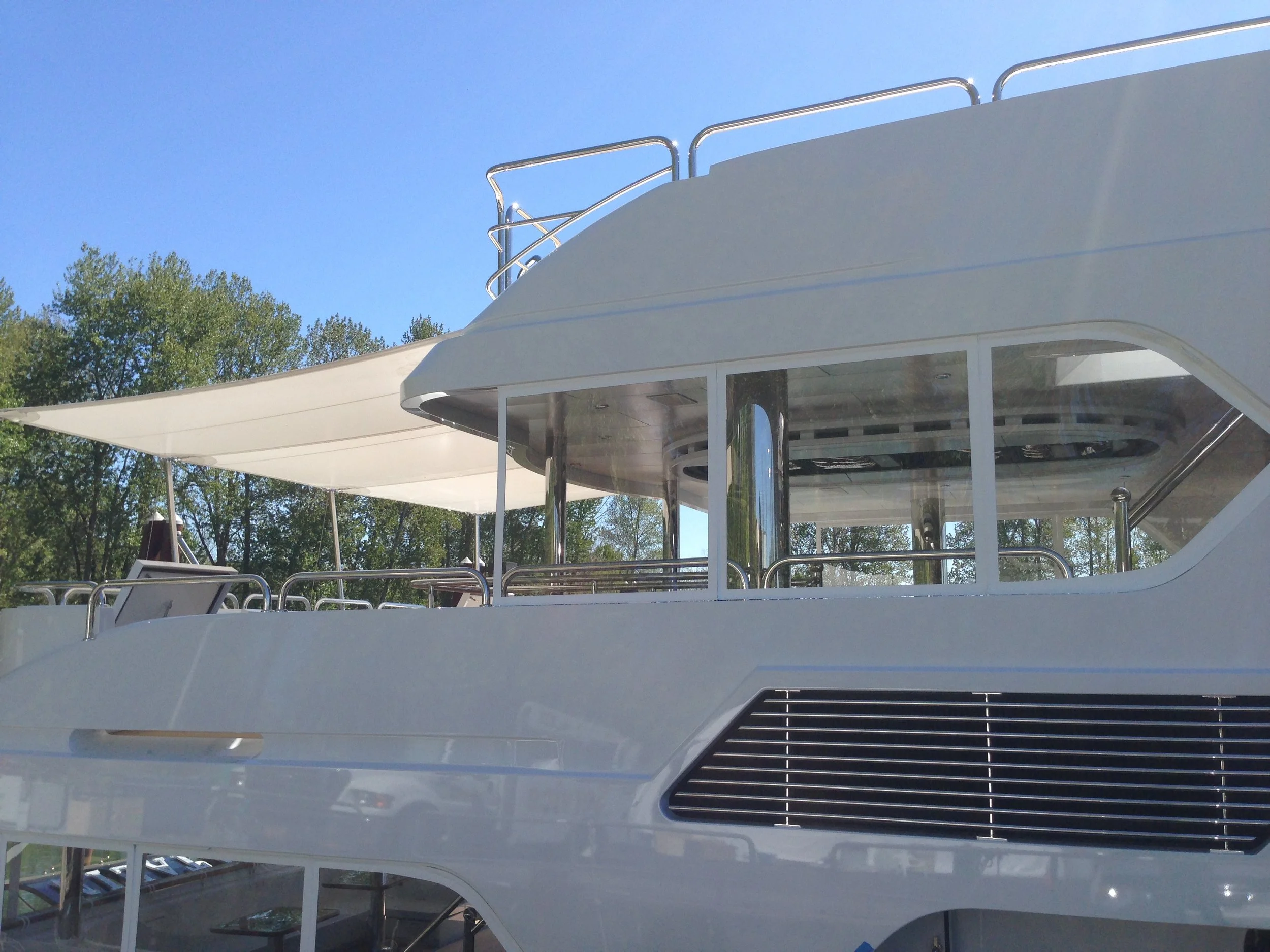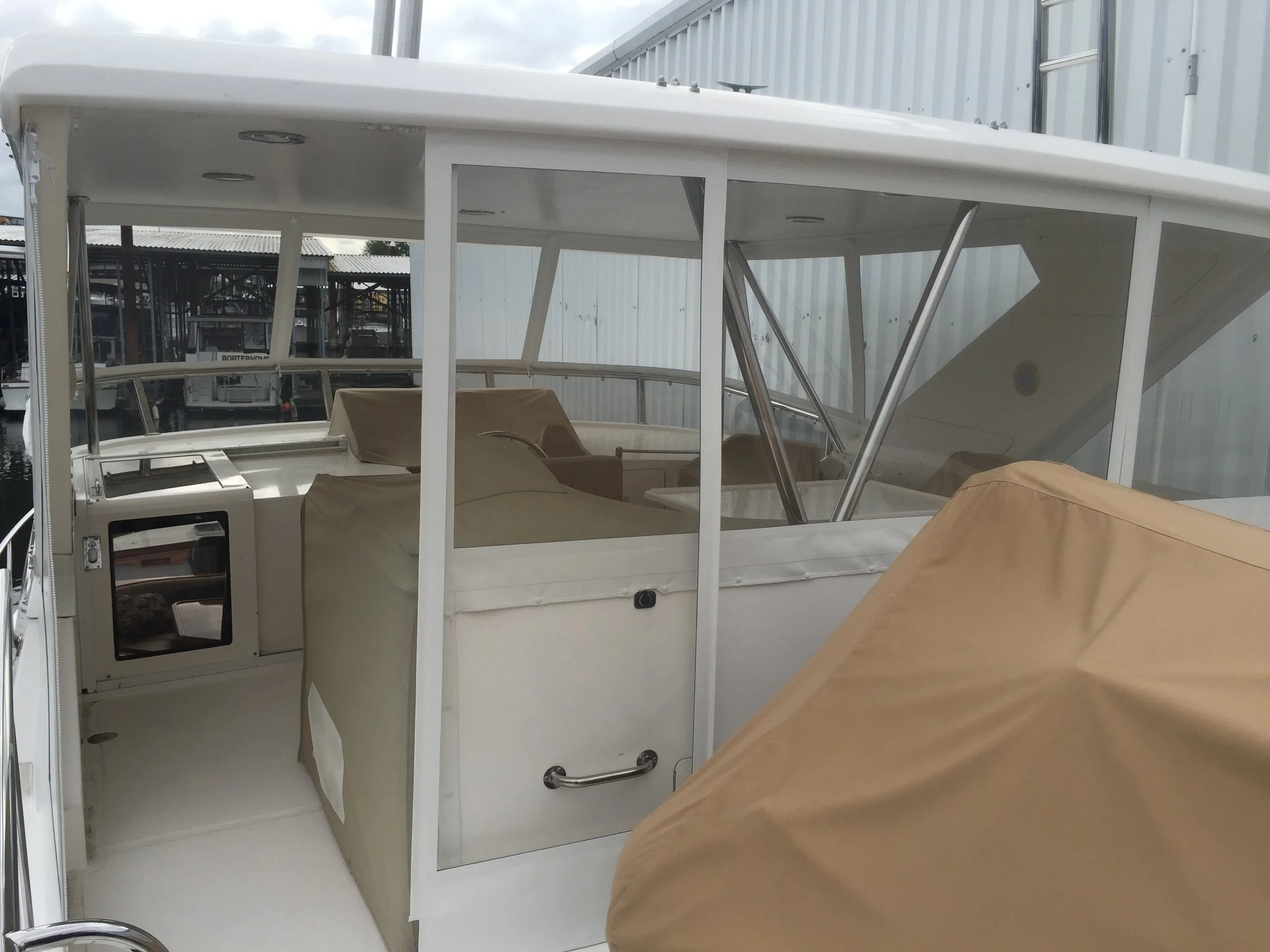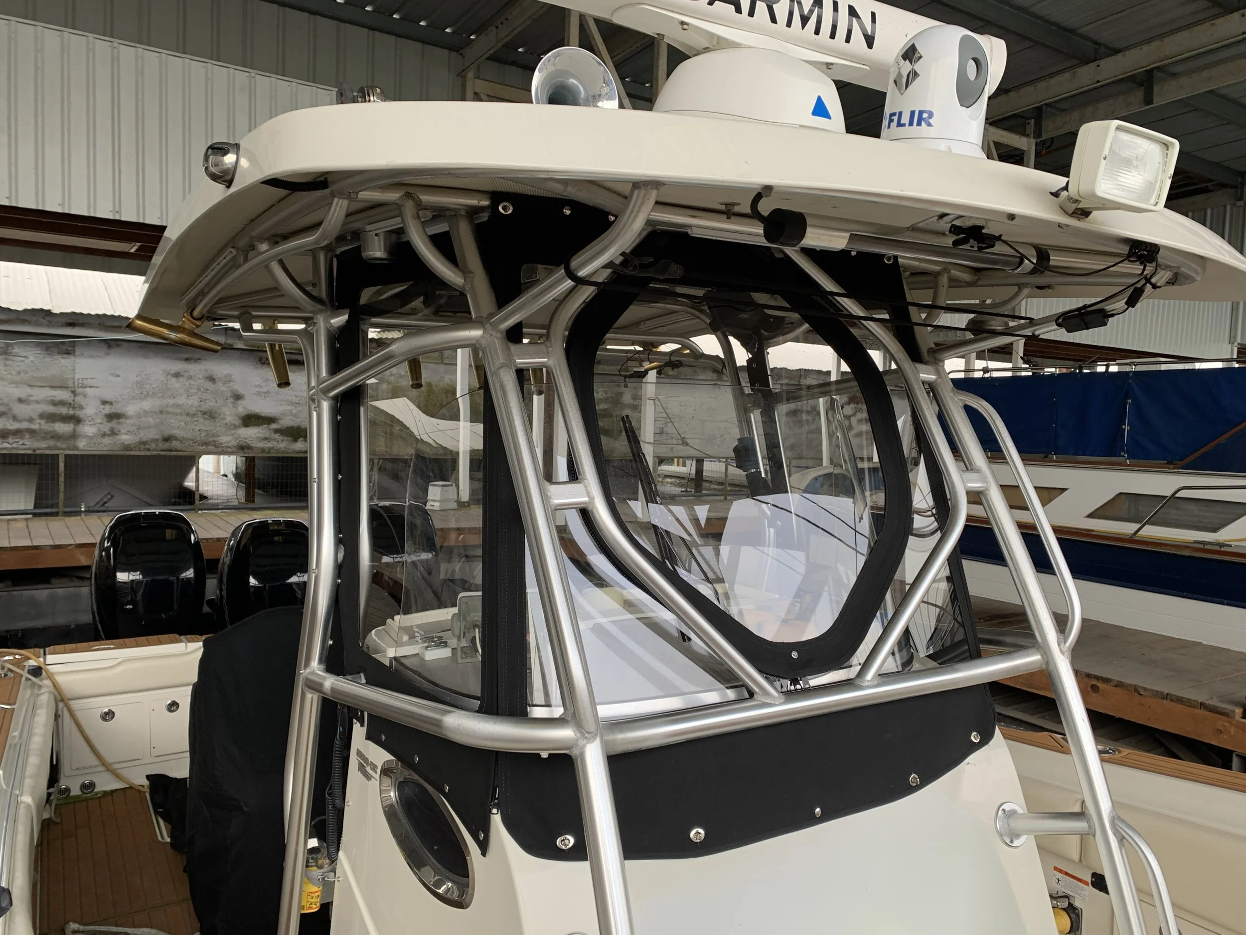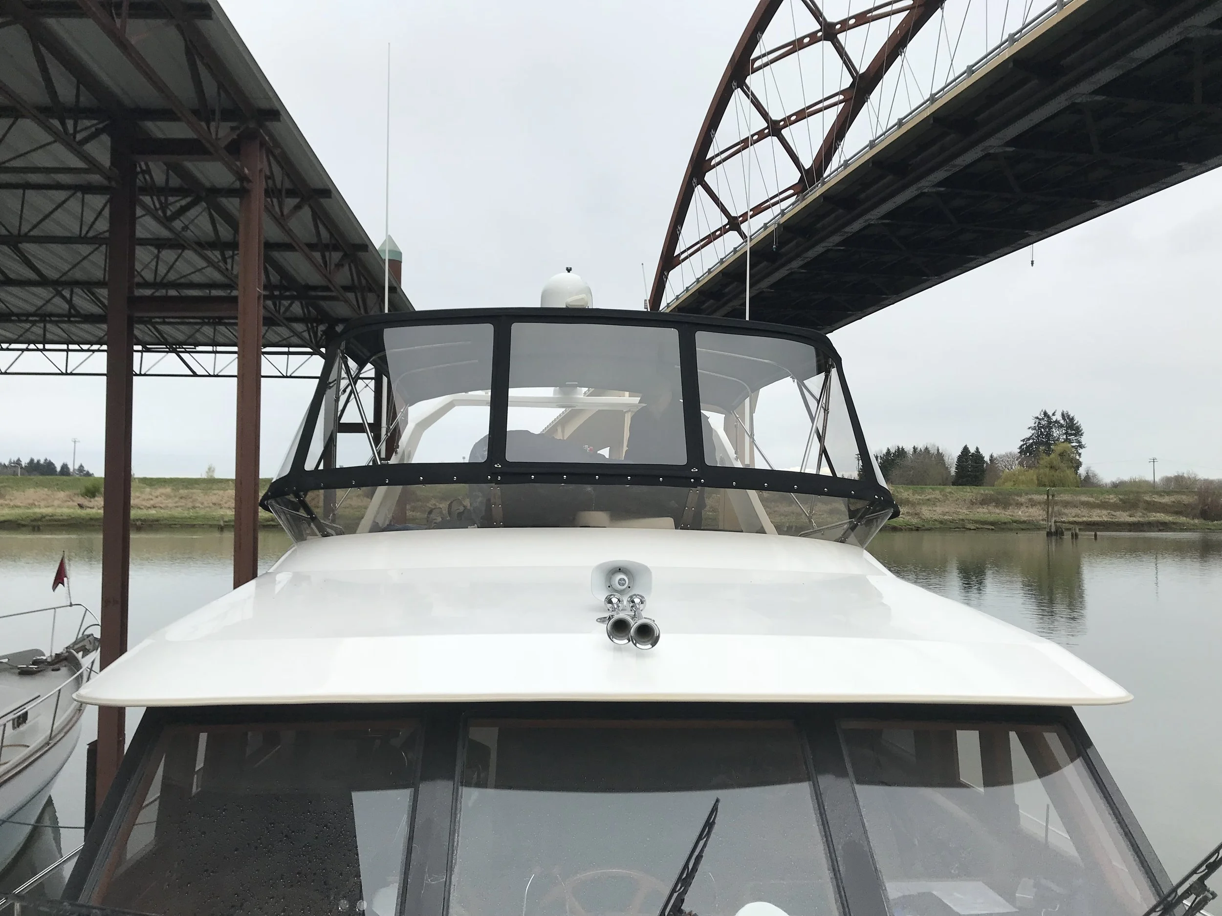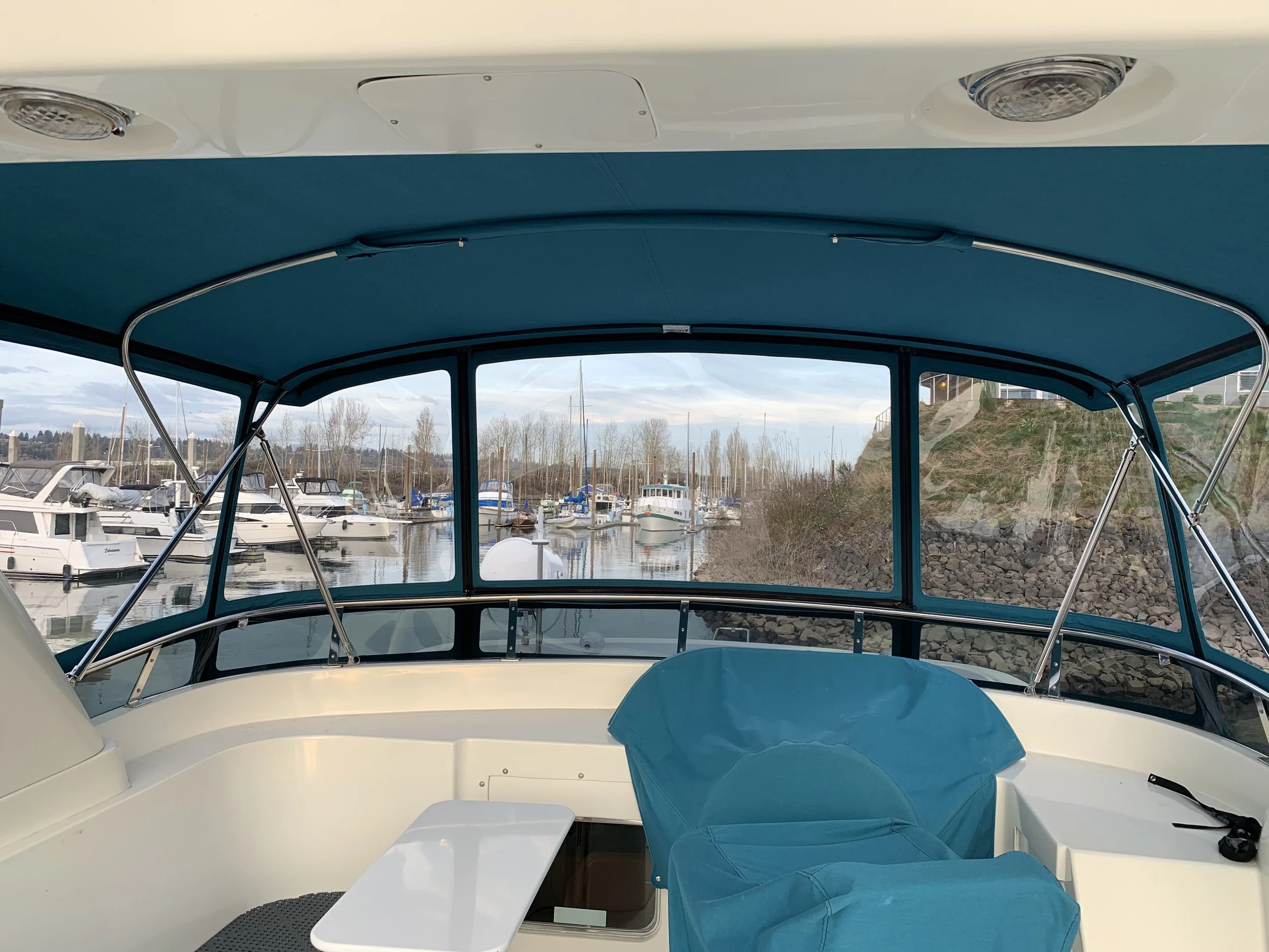 Our Semi-rigid windows start with 60 mil Tuffak Marine 5 polycarbonate. When combined with track to slide panels open, and tempered glass inserts with windshield wipers, these semi-rigid windows offer the best enclosure available for your boat.
